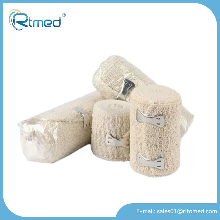 Dải crepe đàn hồi RTMED này là một băng cotton cotlen, cotlen với vẻ ngoài "nhăn" có kết cấu, được thiết kế để cung cấp nén và hỗ trợ vừa phải cho các khu vực bị thương như bong gân và các chủng, đồng thời có thể uốn cong với chuyển động do tính chất đàn hồi của nó